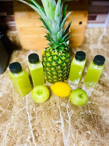 pineapples, green apples, lemon, ginger, spinach and cucumber
